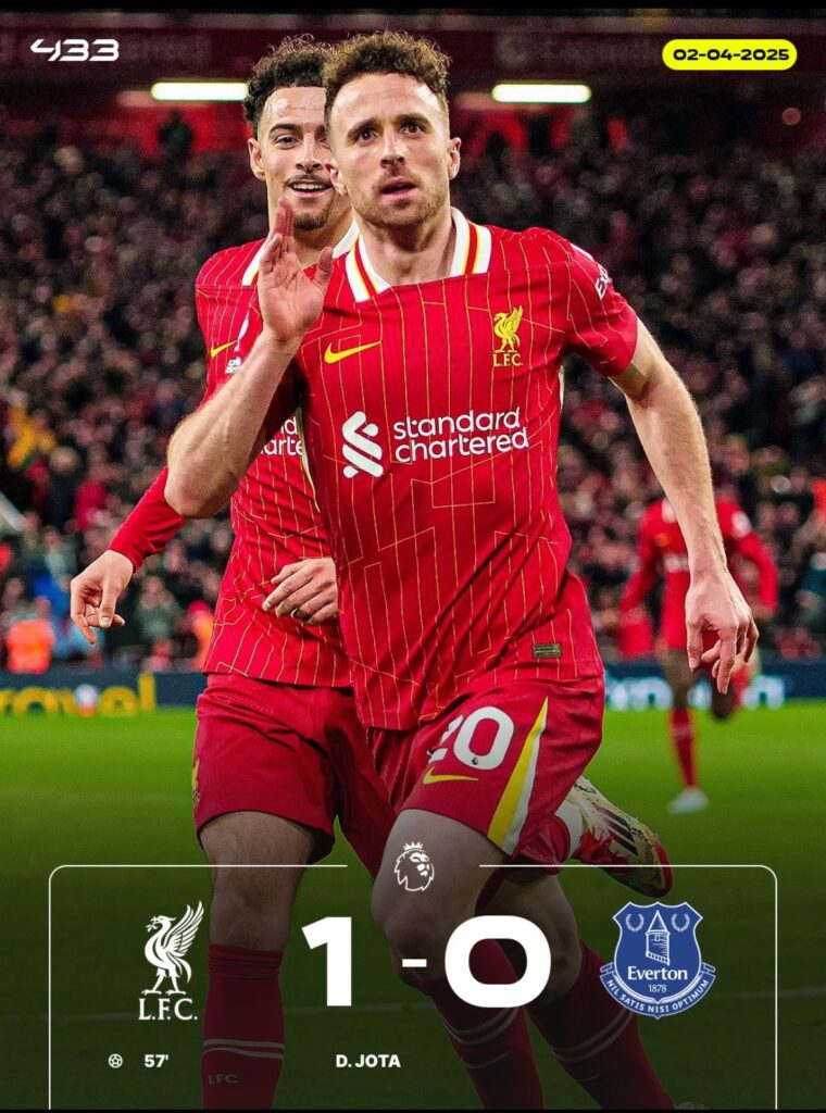 A year ago today, on 4/2/25, Diogo Jota scored his 𝙡𝙖𝙨𝙩 𝙚𝙫𝙚𝙧 goal for Liverpool — a winner in the Merseyside derby at Anfield…