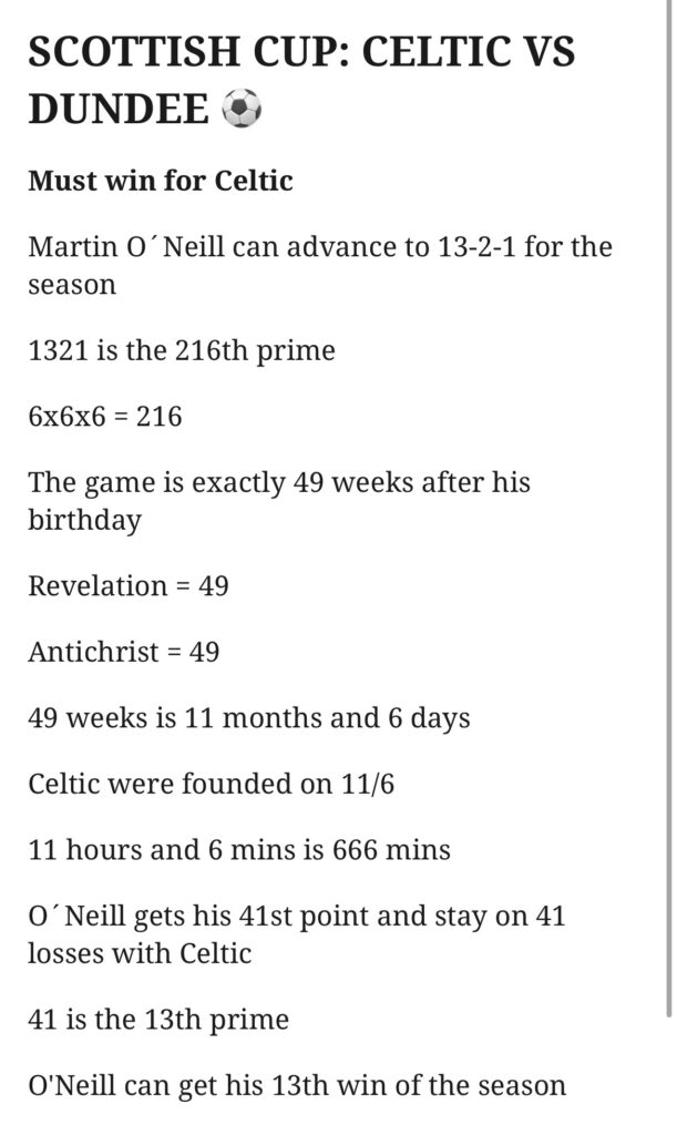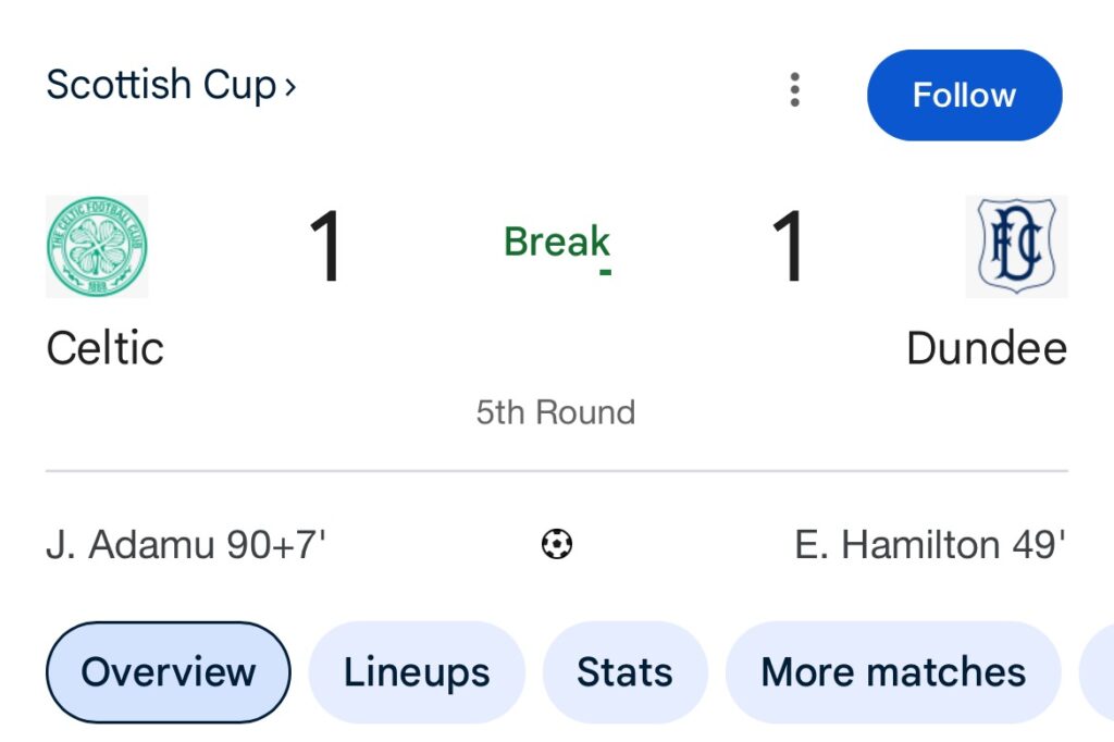 Dundee scored after 49 mins which may be a good sign for Celtic to win and progress with my code