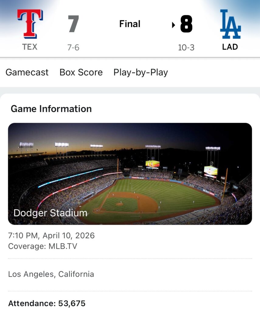 Dodgers led 7-6, and drop Texas Rangers to 7-6 ✅⚾️ in their last bat