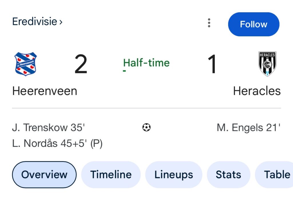 The game is now 2-1 at half time