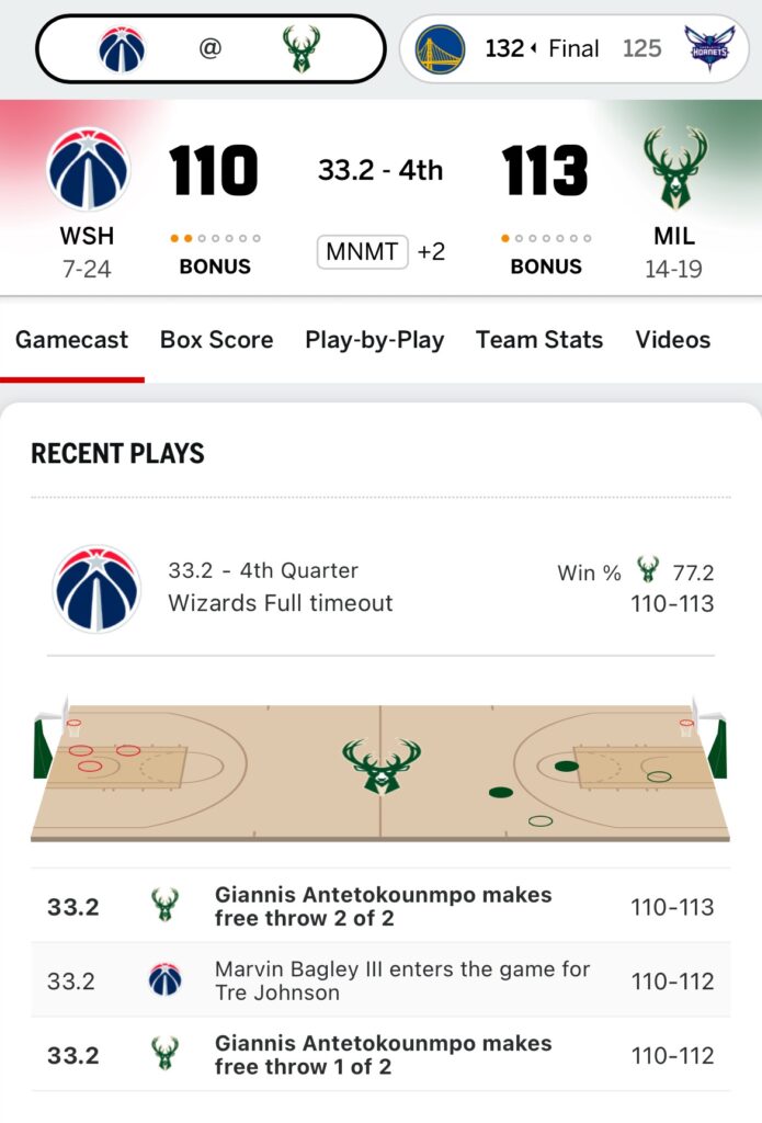 Bucks had a 77.2% of winning with 33 seconds left left and won
