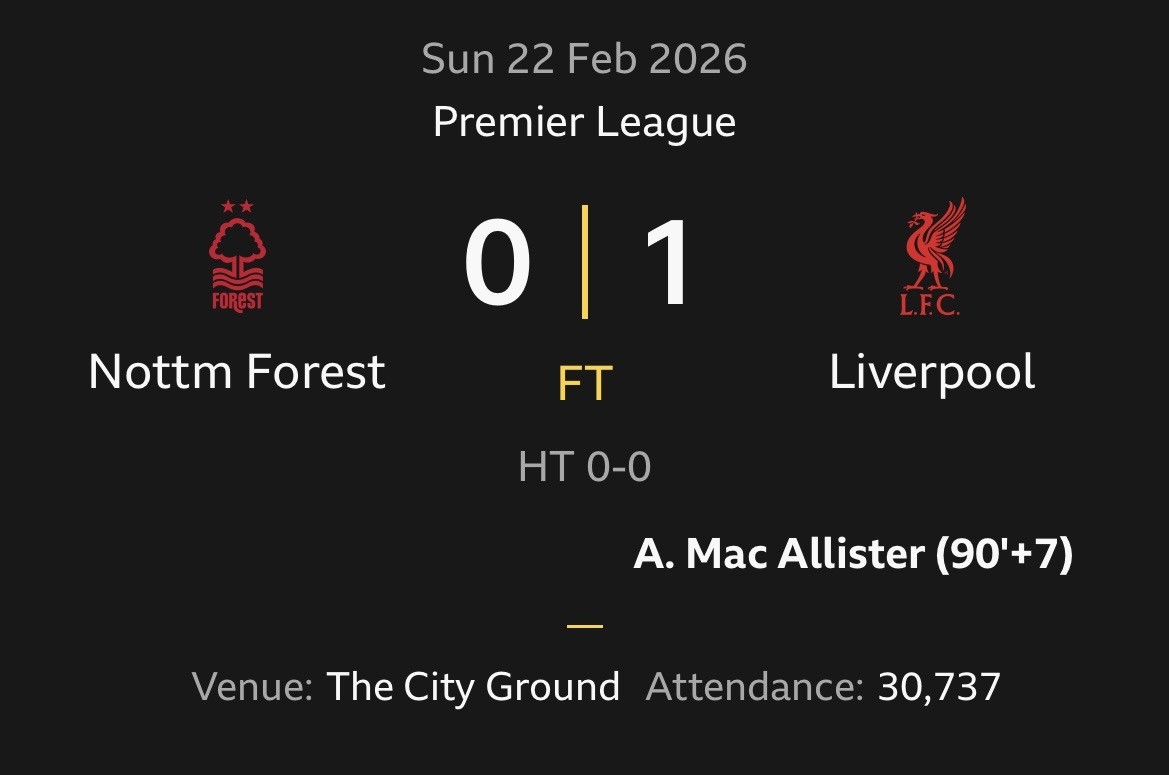 GOAL! Nottingham Forest 0-1 Liverpool (90+7)