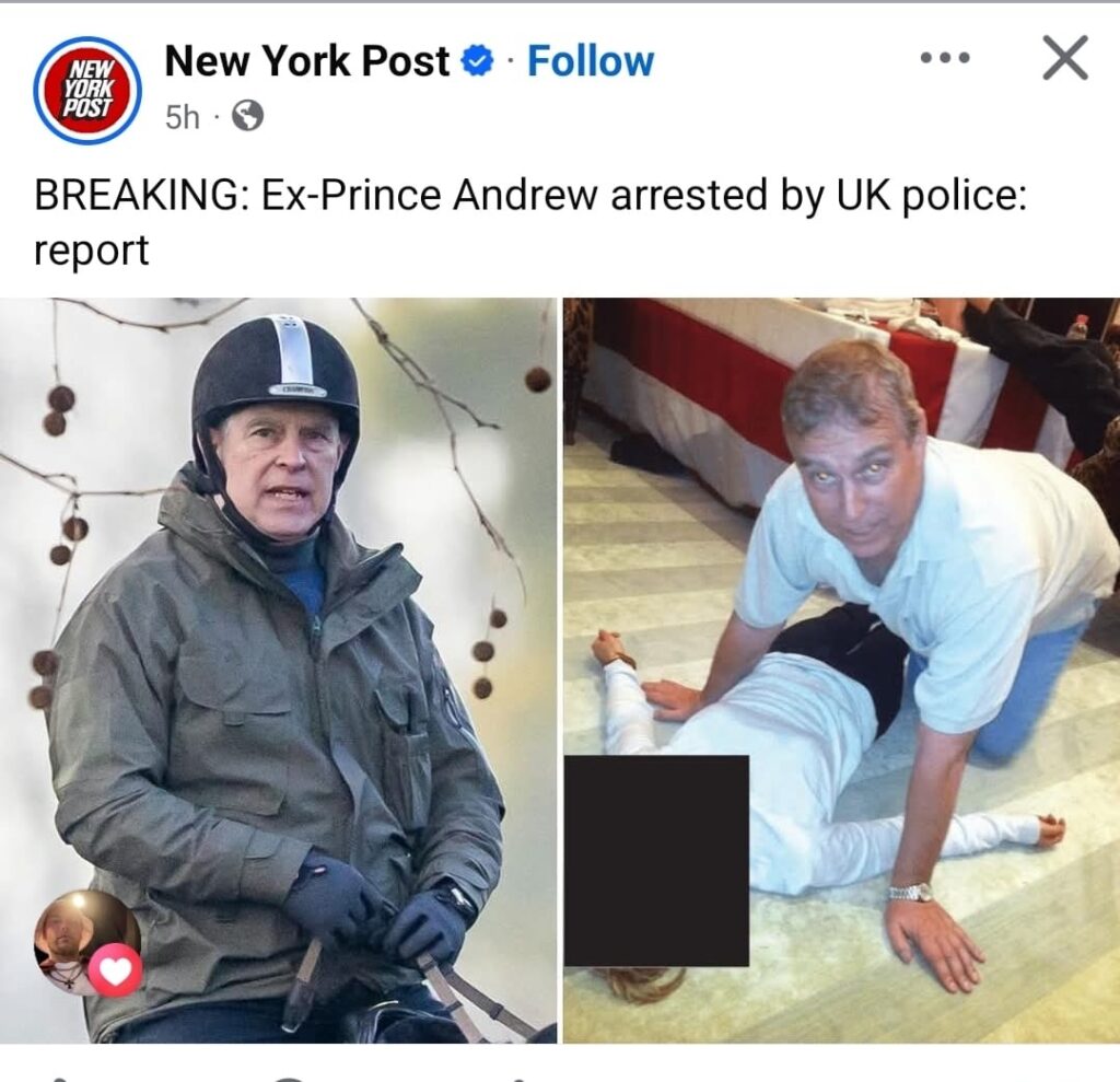 New England Patriots just dropped to 6-6 and Prince Andrew, who is English has just been arrested on his 66th birthday