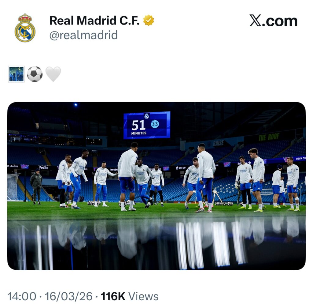 1 day before Real Madrid knocked out Man City 5-1 on aggregate, they posted a photo of them training at the Etihad, with 51 mins on the big screen